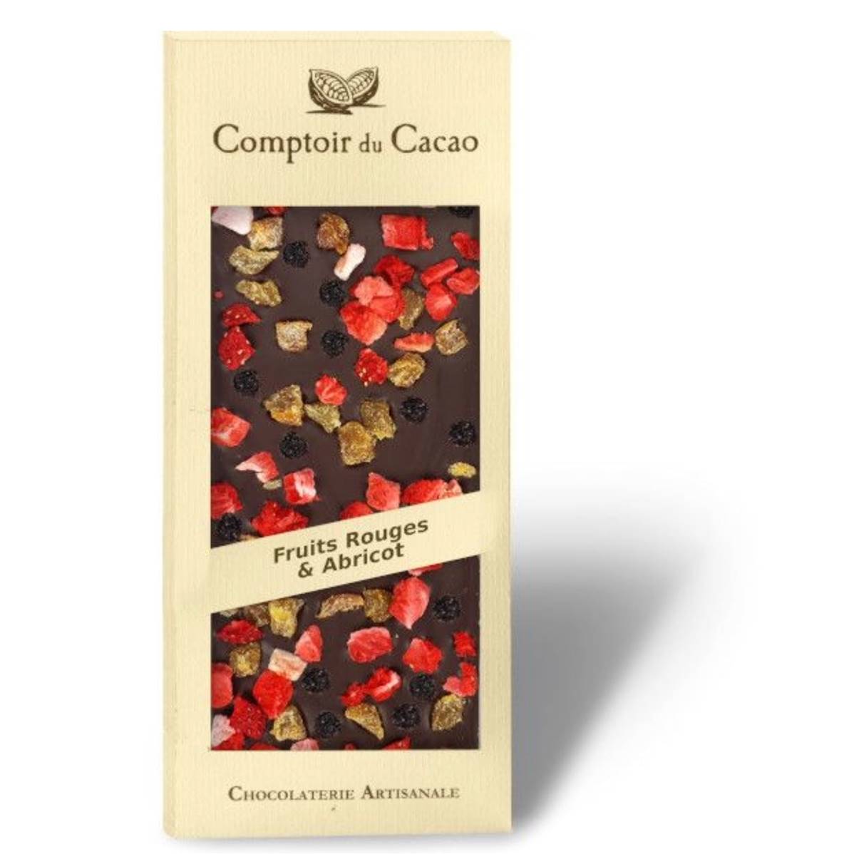 Découvrez l'équilibre parfait entre la douceur fondante du chocolat et l’acidité délicate des fruits rouges associés à la tendresse des abricots. Chaque carré de cette tablette vous offre une explosion de saveurs fruitées, avec une touche gourmande qui émerveillera vos papilles.
